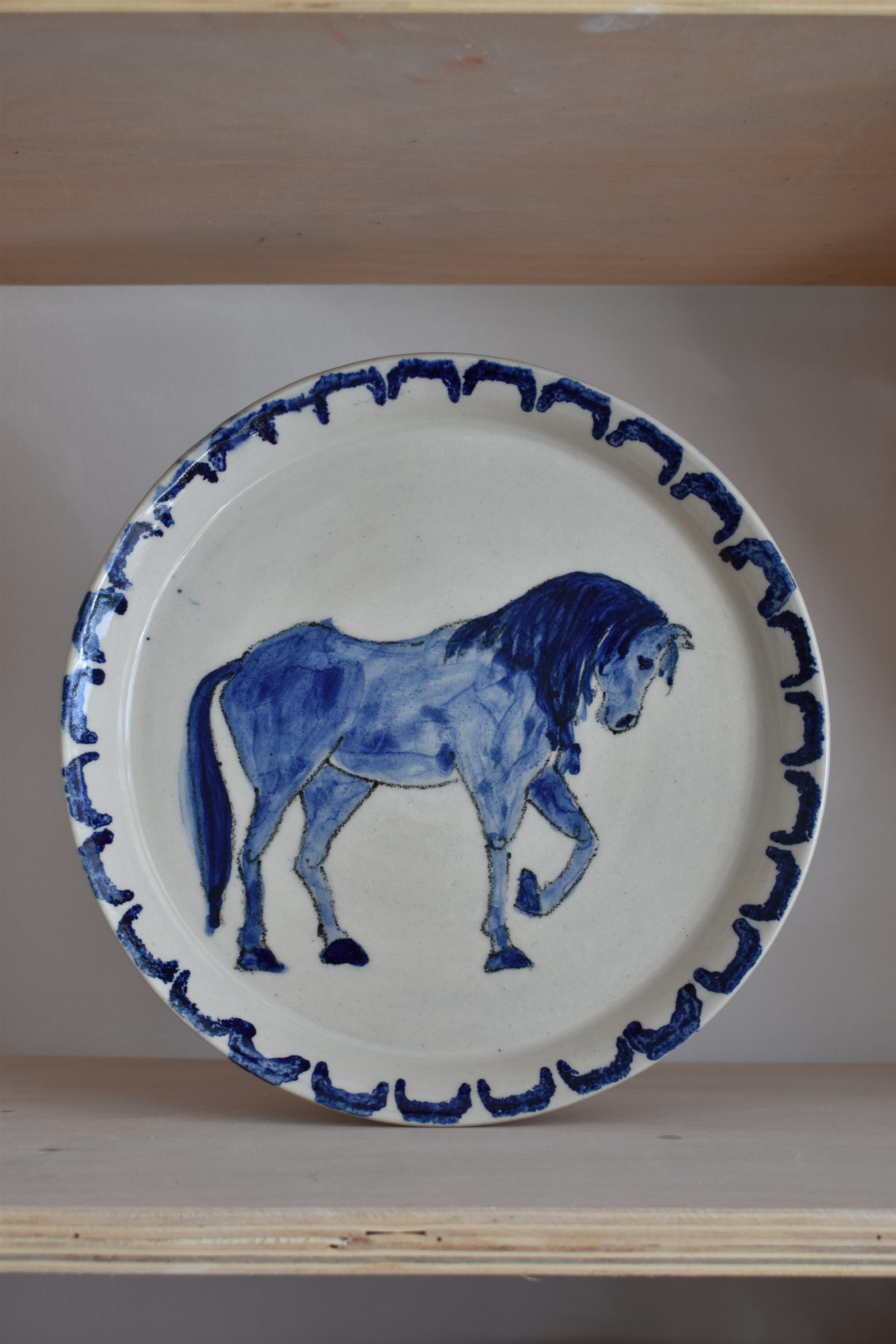 Large standing horse plate, 25.5cm across. A second due to minor design flaws