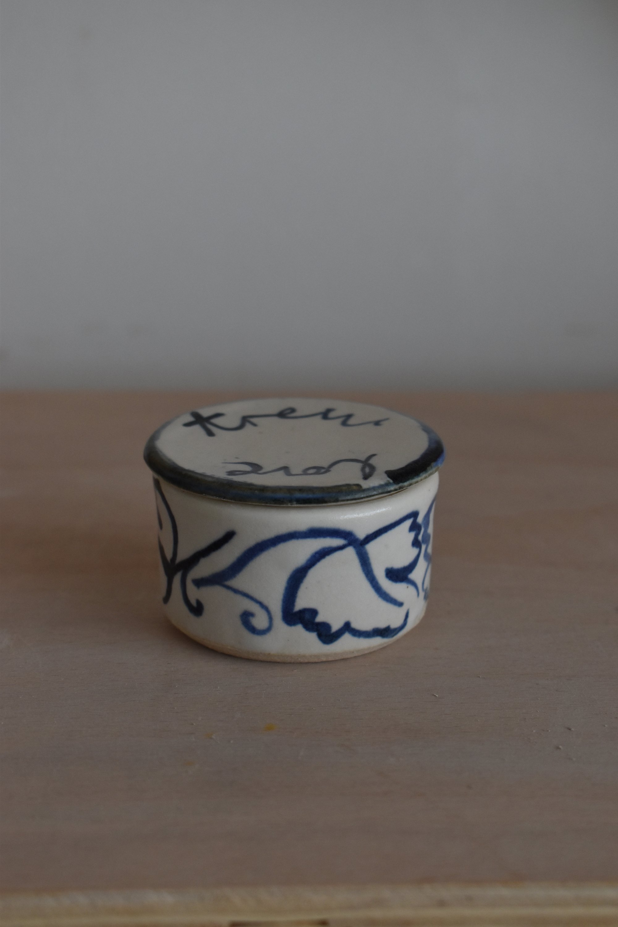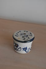 Small lidded pots inspired by Victorian patch boxes. These pots are seconds due to imperfectly fitting lids.